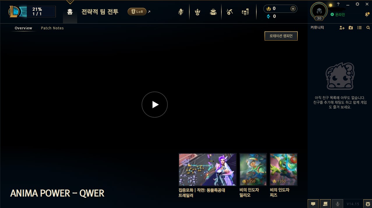 PBE계정생성이 완료됐다면 기존 롤 클라이언트를 켜주고 PBE계정으로 로그인 한 뒤, 업데이트만해주면 끝이다.